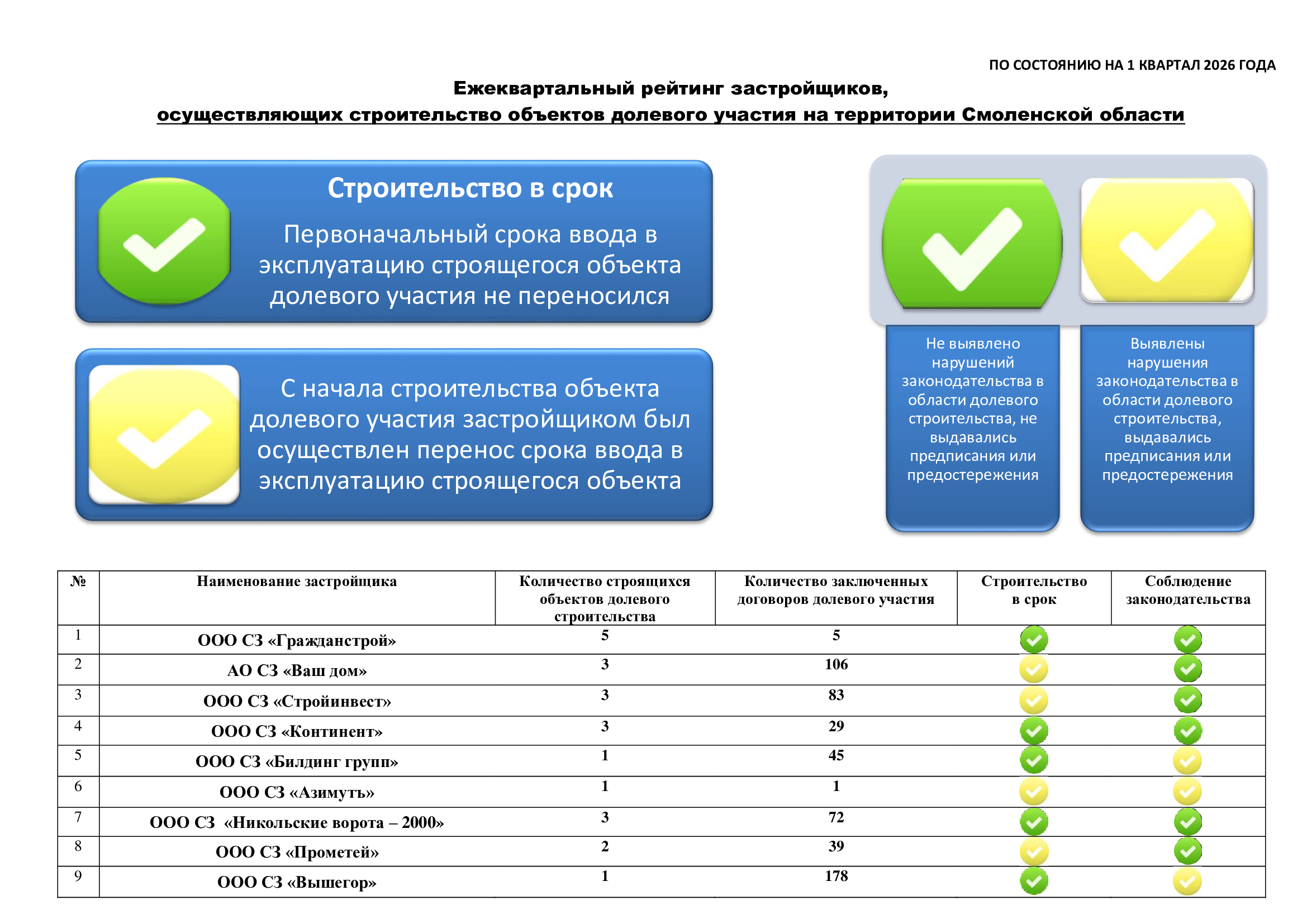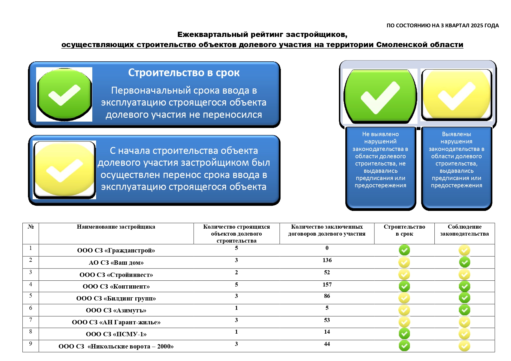 Рейтинг застройщиков по соблюдению требований законодательства в области долевого строительства